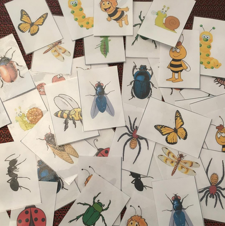 Пока я подготавливала игру, дочка тоже взялась за ножницы и навырезала карточек.